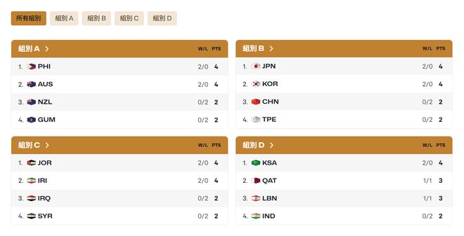 男籃世界杯亞洲區預選賽分組與積分/圖片來源:FIBA官網
