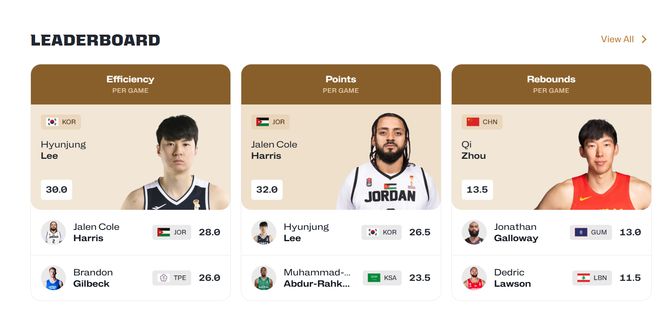 李賢重是世界杯亞洲區預選賽現階段的“得分王”/圖片來源:FIBA官網