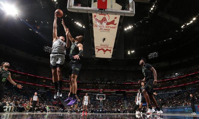 馬刺上一場客場117-130輸給騎士,鵜鶘過去6場遭遇6連敗位列聯(lián)盟墊底,本賽季前兩次交鋒馬刺均取勝。本場馬刺缺少文班亞馬、麥克勞林,鵜鶘缺少錫安、穆雷、普爾。首節(jié)開局雙方纏斗至9-9,馬刺連得4分,鵜鶘連得5分反超,馬刺內(nèi)外開花逐步擴(kuò)大26-20領(lǐng)先優(yōu)勢。阿爾瓦拉多三分命中,馬刺一波9-2攻勢拉開比分,首節(jié)結(jié)束馬刺35-25領(lǐng)先鵜鶘。馬刺25中13超過5成準(zhǔn)星,其中三分8中5超過6成準(zhǔn)星,鵜鶘23中10,其中三分8中2低迷。