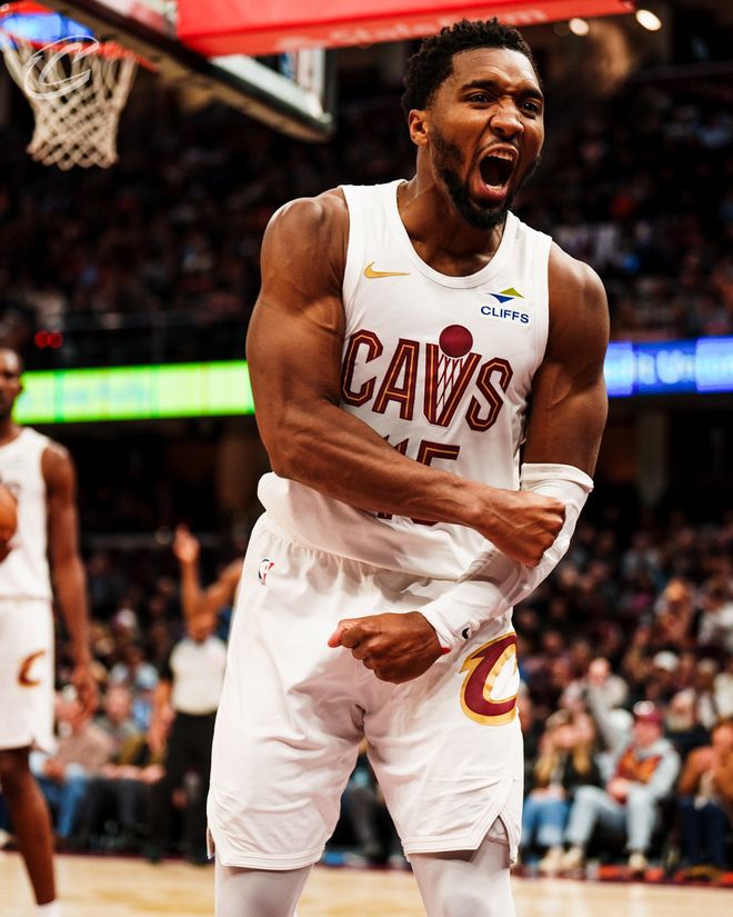 騎士隊首發陣容:加蘭、米切爾、亨特、莫布里、泰森