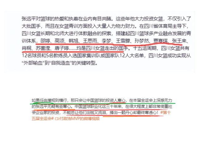 很不甘心?CBA名記付政浩:四川女籃本屆全運會沒有奪冠,是因為有一些事情超出了比賽范疇,如此情況,也是讓四川女籃投資人張遠平,感到失望和寒心。一些潛規則橫行,讓投資人感到無力和寒心……