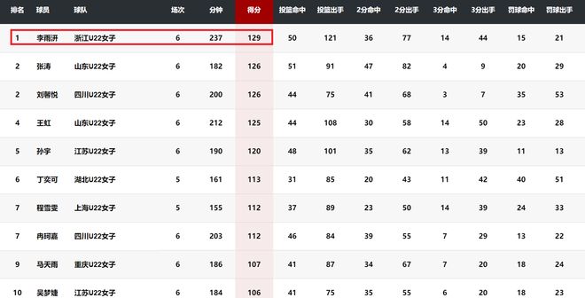 她是全運會U22女籃賽場的鐵人,6場比賽4次打滿全場,另外兩戰總共休息了4分鐘。她是全運會U22女籃的得分王,率領浙江U22女籃奪得了亞軍,并且創造了浙江女籃在全運會籃球項目上的最好成績。李雨汧用優異的成績告別了自己的最后一場青少年級別的比賽。新賽季她將代表浙江女籃征戰WCBA比賽。此前,她入選了今年的中國女籃集訓名單,成為了主帥宮魯鳴的重點考察對象。