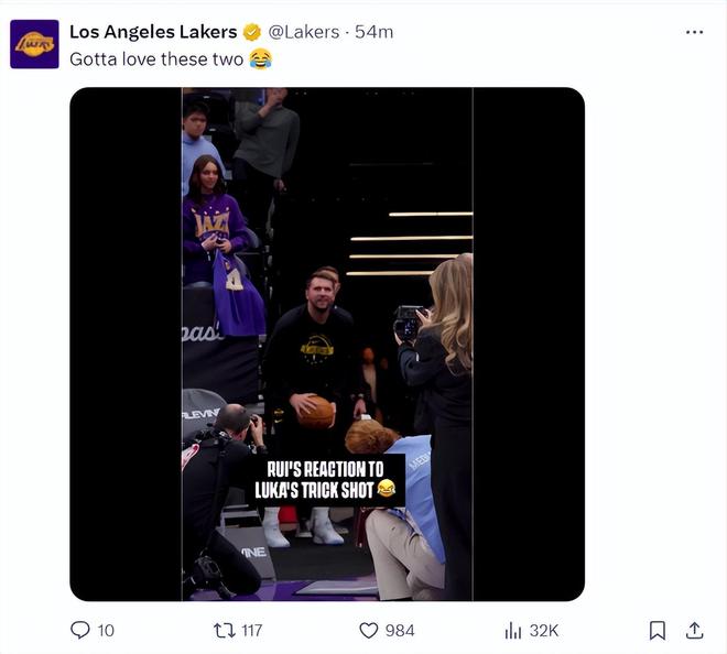 賽前東契奇在球員通道命中了超遠三分,八寸壘笑著上來跟東契奇慶祝。