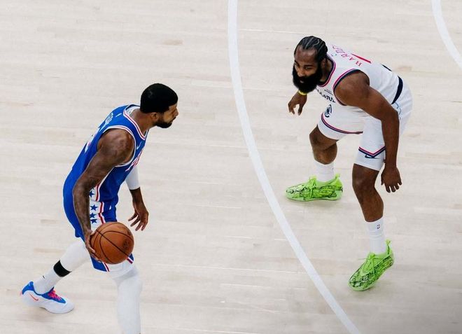 為什么?得益于馬克西本賽季超級爆發(場均33分4.6籃板7.8助攻1.6搶斷),76人在競爭激烈的東部(10支球隊勝率超過5成),基本保持在前八名。其實說句難聽話,76人開局一度打出數一數二的表現,恩比德出場時間限制+負荷管理進進出出,把球隊整體效率拖下來了,年輕隊友要給他填坑。喬治復出后,他在場時球隊百回合輸對手2.2分;他不在場時球隊百回合贏對手1.4分,于是On-Off值是-3.6。關鍵是喬治在場時,球隊進攻效率差值是-10.7,簡單來說,進攻已經到了聯盟墊底水平!