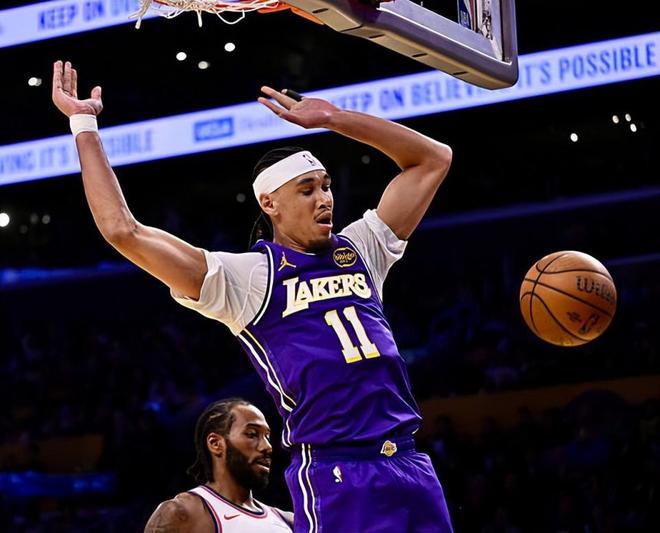 本場比賽中,頂替德安德烈-艾頓(DeAndre Ayton)進入湖人先發陣容的內線球員賈克森-海斯(Jaxson Hayes)的表現還是值得肯定的。海斯全場出場29分50秒,投籃4中3,罰球2中2,得到了8分4籃板3助攻1搶斷1蓋帽的數據,還有1次失誤和2次犯規,正負值更是達到了全場最高的+21。海斯在進攻端雖然機會不多,但也是展現出了很強的終結能力并且得到了一些分數。不僅如此,海斯還展現出了一定的傳球能力和策應能力。除此之外,海斯在防守端也能夠利用自己的運動能力和積極性起到一定的作用,他在與快船內線支柱伊維察-祖巴茨(Ivica Zubac)的正面較量中也并沒有吃虧。海斯在遇到沖突的時候也敢于為隊友出頭,這樣的態度也同樣能夠影響到全隊的表現。雖然數據不算特別突出,但是他在比賽中的重要性也是有目共睹的。
