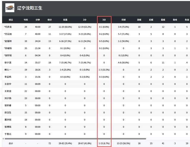 盡管贏了,但看看遼寧U19男籃的投籃命中率,真是叫人揪心,此役82投29中,只有35.4%。三分球繼上一場16投1中,之后,此役更是15投1中,趙銀橋5投0中,柳人一3投1中。好在籃板球保護的不錯,此役拿到41個籃板球,碾壓對手的28個。