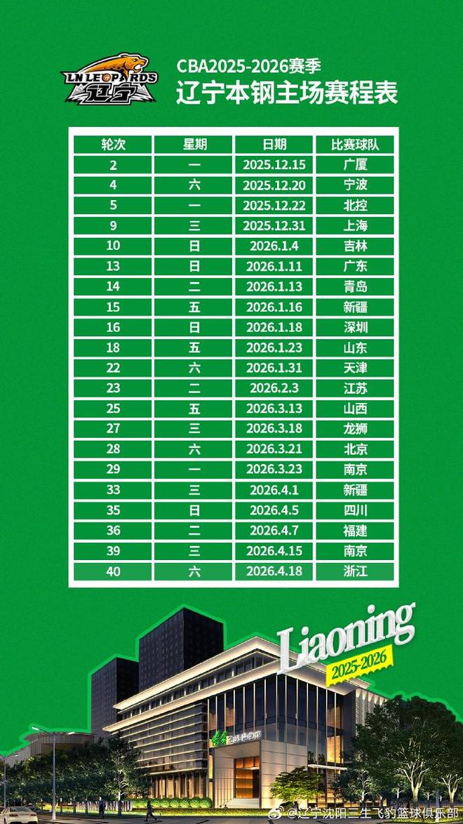 新賽季遼寧男籃的首個主場比賽將在12月15日迎戰(zhàn)衛(wèi)冕冠軍浙江廣廈隊。