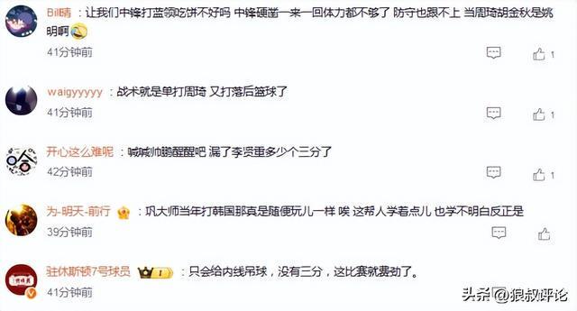 球迷對于本場比賽男籃的表現(xiàn)引發(fā)多方面的質(zhì)疑,尤其是長時間使用三后衛(wèi),以及戰(zhàn)術(shù)就是單打周琦。
