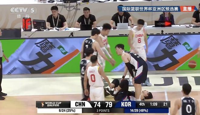上半場,中國隊僅有程帥澎投中了1個三分球,外線9中1,而韓國隊則15中9,李賢重一人在外線8中6,砍下20分6個籃板1次搶斷,韓國隊也以47比34領先13分之多。