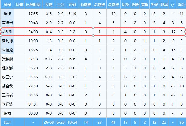 角色球員李祥波沒籃不適合郭指導的體系;王嵐嵚防守大漏勺,沒有國際大賽經(jīng)驗失誤多;雷蒙在亞洲杯三分命中率就非常低迷;高詩巖上空籃不進,沒有組織和攻堅能力,只能當替補奇兵;胡明軒感覺有傷在身,太疲憊了,目前沒投籃沒組織,突破也遠不如從前。