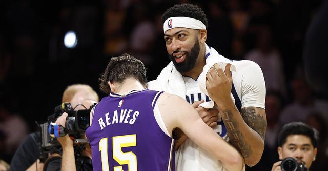 比賽結(jié)束后,他和老朋友、前隊(duì)友奧斯汀·里夫斯互換了球衣,里夫斯當(dāng)晚為湖人砍下38分。