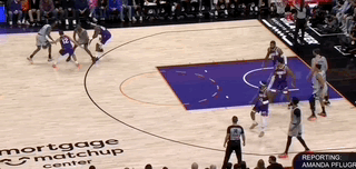 米切爾突進來看到文班協防,立刻冒著被斷球的風險甩給底角,隊友面對補防也只能用逆天的弧度投出三不沾