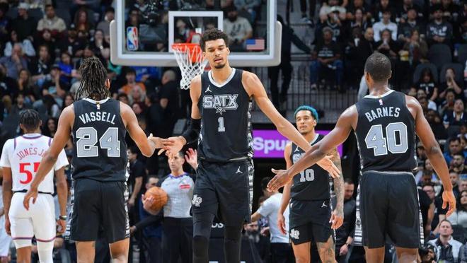 但無論人員變換,馬刺的打法一直很清晰——持球人發起擋拆突分,其他人接球終結,輔以瓦塞爾和尚帕尼的繞掩護投射、福克斯和巴恩斯的單打、凱爾登和布萊恩特的沖擊力,形成傳統而有效的擋切進攻體系。