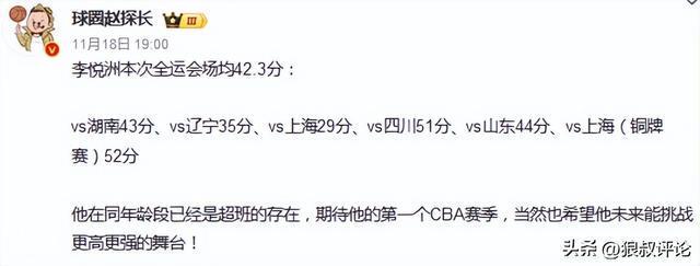 全運會場均42分!吳前:外界對李悅洲關注太高,這不是好事