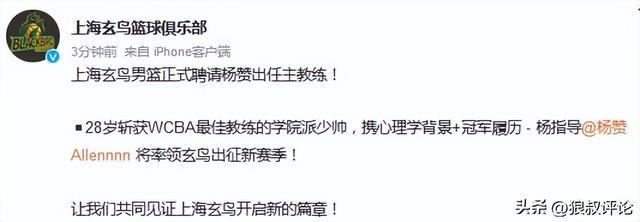 北京時(shí)間11月30日,根據(jù)上海玄鳥籃球俱樂部公示,28歲斬獲WCBA最佳教練的學(xué)院派少帥,攜心理學(xué)背景+冠軍履歷 - 楊指導(dǎo)將率領(lǐng)玄鳥出征新賽季。
