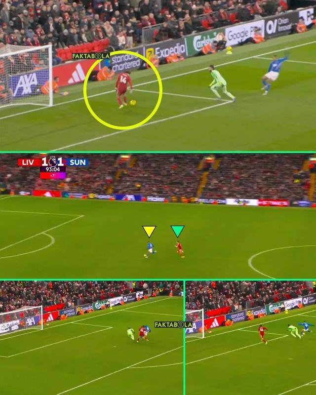傷停補時第90+3分鐘,利物浦獲得角球機會,全隊幾乎全員壓上。桑德蘭門將羅埃夫斯拿到皮球之后,直接大腳開球達到前場,替補登場的伊西多爾高速前插形成單刀并成功過掉門將阿利松,然而他的射門卻被狂奔半場高速回防的基耶薩成功解圍。