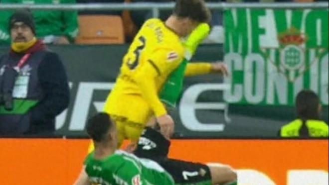 比賽進行到第91分鐘,主裁判奧斯·加萊奇中斷比賽,親自到場邊觀看VAR回放,復核安東尼與赫羅納3號球員霍埃爾·羅卡之間的沖突。慢鏡頭顯示,安東尼在一次爭搶中騰空飛踹,但并未觸到皮球,而是直接踢中了對方臉部。