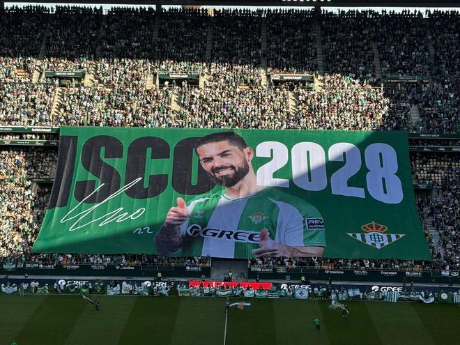 西甲第13輪,皇家貝蒂斯主場對陣赫羅納,賽前,皇家貝蒂斯官方宣布,俱樂部與伊斯科續約至2028年,并在主場看臺展示TIFO,慶祝這一特殊時刻。