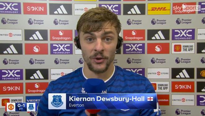 英超第12輪一場較量,曼聯主場0-1不敵十人埃弗頓。賽后,打入全場唯一進球的迪尤斯伯里-霍爾接受了天空體育的采訪。
