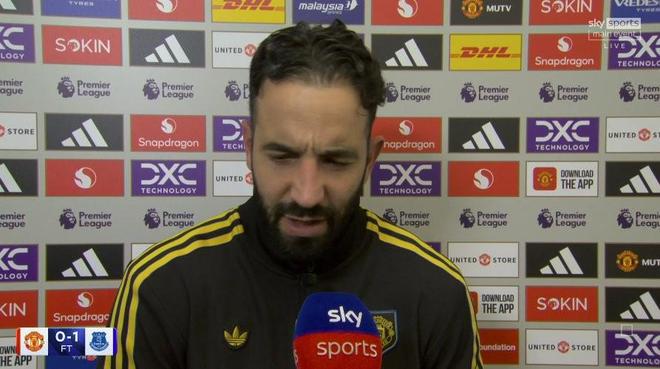 英超第12輪,曼聯(lián)主場(chǎng)0-1不敵十人作戰(zhàn)的埃弗頓,賽后,紅魔主帥阿莫林接受了天空體育的采訪。