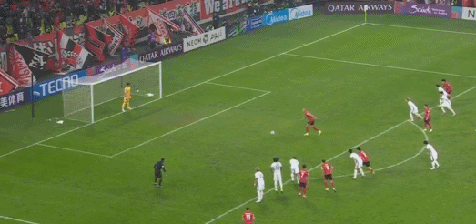 從慢鏡頭來看,荒木隼人的沖撞動作非常明顯。回看慢鏡頭之后,主裁判維持點球判罰,費利佩主罰點球破門,1比0!