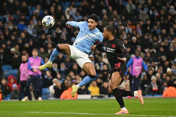 國(guó)際比賽日之后,曼城已經(jīng)連輸2場(chǎng)比賽。他們?cè)诼?lián)賽客場(chǎng)1-2不敵紐卡,歐冠回到主場(chǎng)又以0-2不敵勒沃庫(kù)森,表現(xiàn)令人失望。上半場(chǎng)雙方勢(shì)均力敵,曼城未能在主場(chǎng)展現(xiàn)出應(yīng)有的統(tǒng)治力,45分鐘內(nèi)僅完成5次射門。第23分鐘,勒沃庫(kù)森的格里馬爾多無(wú)人盯防,突入禁區(qū)左腳抽射破門,雖然進(jìn)球精彩,但曼城防守失誤明顯。