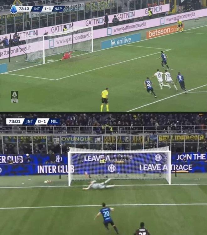 恰爾汗奧盧在國際米蘭生涯共計主罰29個點球,他僅僅罰丟了兩個,但這兩個罰丟點球的方式卻完全一模一樣。
