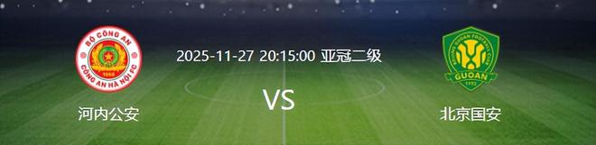 北京時間11月27日晚20:15,亞冠二級聯賽E小組第5輪將上演一場令中國球迷無比關注的比賽,中超北京國安做客挑戰越南河內公安。