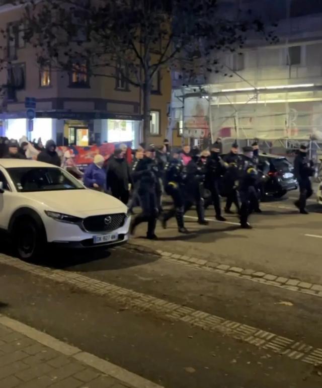 警笛聲在寒冷的街道上回蕩,視頻中可見(jiàn)水晶宮球迷手持旗幟和圍巾,穿行在斯特拉斯堡市區(qū)。