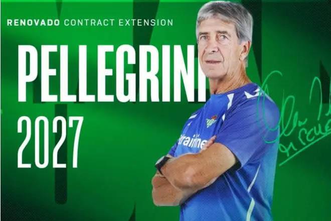 北京時間11月28日,皇家貝蒂斯官方發布公告,宣布與球隊主帥佩萊格里尼續約至2027年。