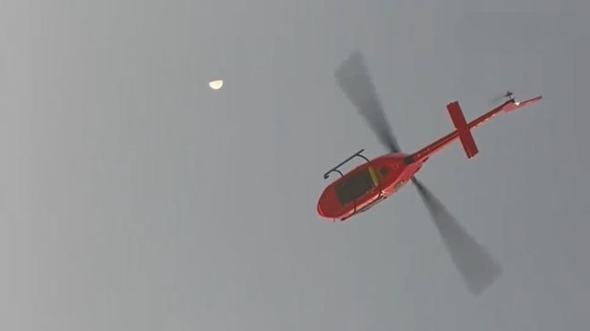 當(dāng)直升機慢慢接近,眼尖的球迷發(fā)現(xiàn),這架直升機的機身上居然印著海港隊徽(下圖)。這一幕實在震撼人心。不知道這是不是海港俱樂部專屬的直升機。俱樂部財力十足,足以讓很多囊中羞澀的中超同行羨慕不已!