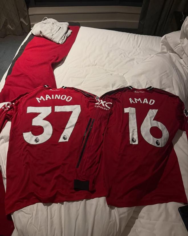 今年9月,英超聯賽第5輪,曼聯在主場2-1戰勝了切爾西。阿馬德-迪亞洛首發出戰并打滿了全場,梅努則是在比賽尾聲階段獲得了登場機會,今夏轉會至切爾西的加納喬則是枯坐板凳席、未獲登場時間,不知道加納喬拍攝的這兩件球衣是否是這場比賽梅努和阿馬德身穿的球衣。