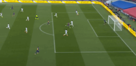 巴爾德左路做球,拉菲尼亞下底倒三角傳中,萊萬和奧爾莫搶點雙雙踢空,亞馬爾后點跟進勁射破門,1-1!