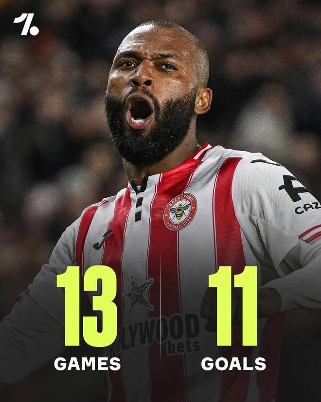 這位巴西的大中鋒身價僅2200萬歐,身高有1.91米,是小蜜蜂攻城拔寨的利器。他的速度、力量和天生的進球本能幫助布倫特福德在艱難開局后攀升至積分榜第8位——13場比賽中拿下6場勝利。他在此前對陣曼聯、利物浦和紐卡時就有過進球。