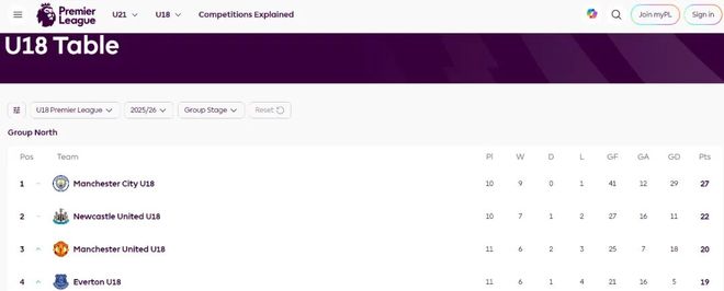 7-0,名宿達倫·弗萊徹執教的曼聯U18取得壓倒性的勝利,在U18英超聯賽北區排名第三。曼聯多打一場,仍然落后于曼城和紐卡斯爾聯,「藍月亮」的青年隊本周同樣大勝,6-0擊敗諾丁漢森林。